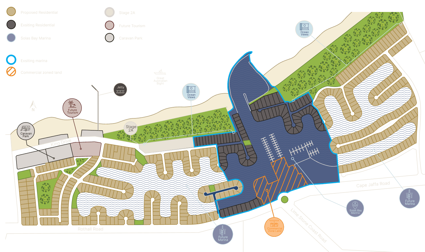 Solas Bay Marina at Cape Jaffa offers something rare: an operational marina with available berths, boat ramp access, and premium coastal land.